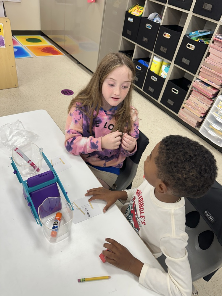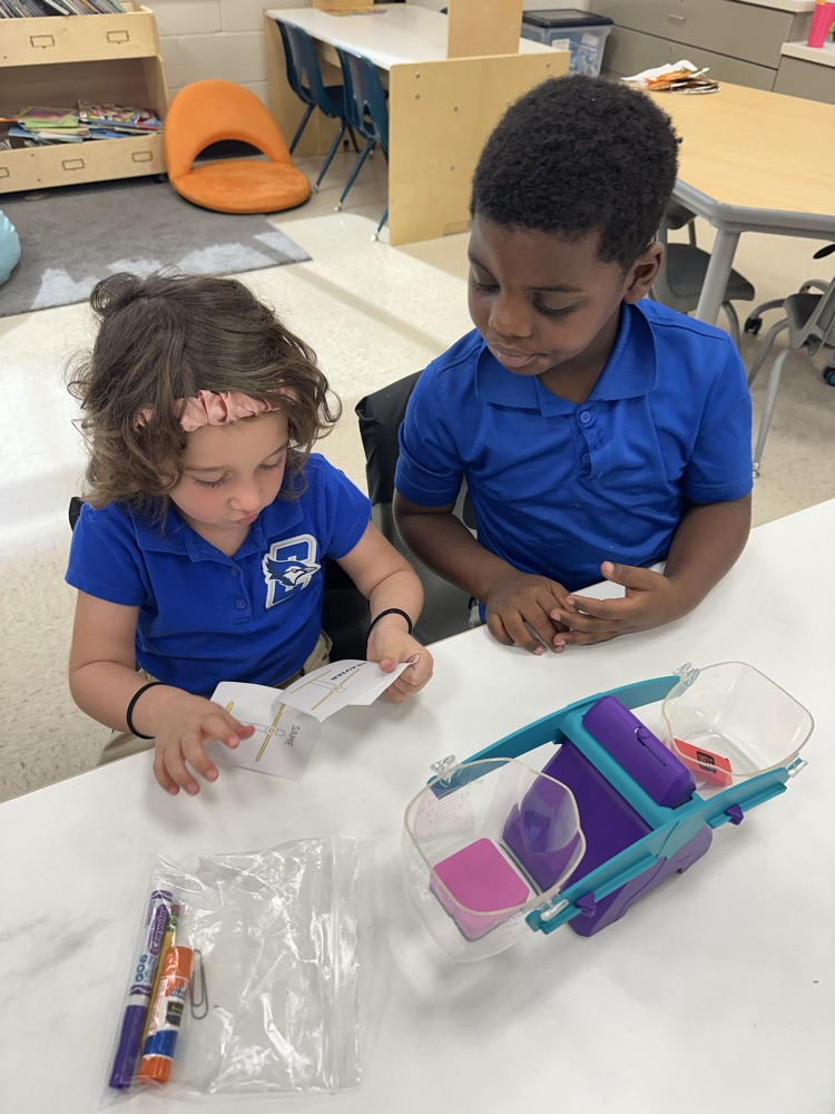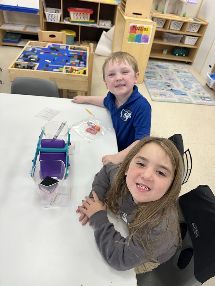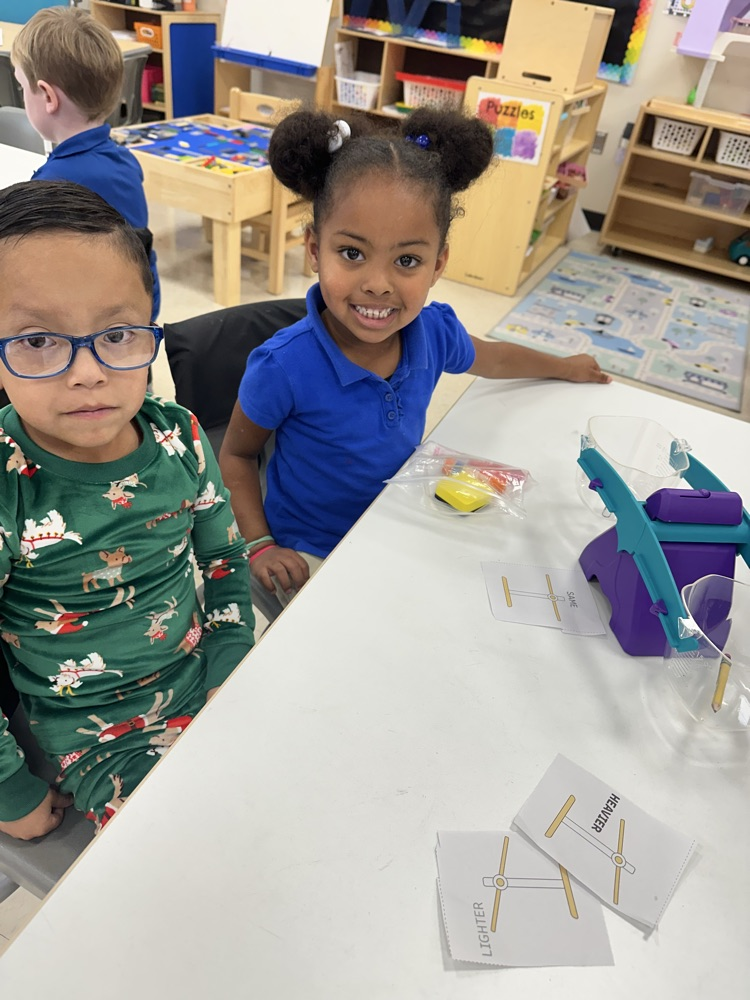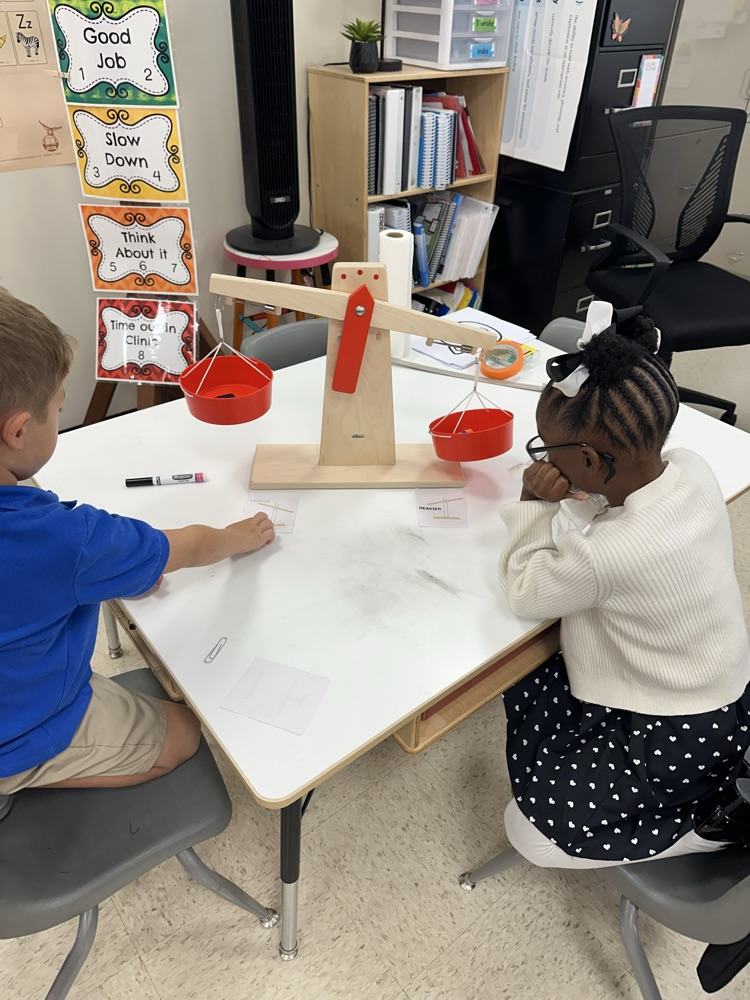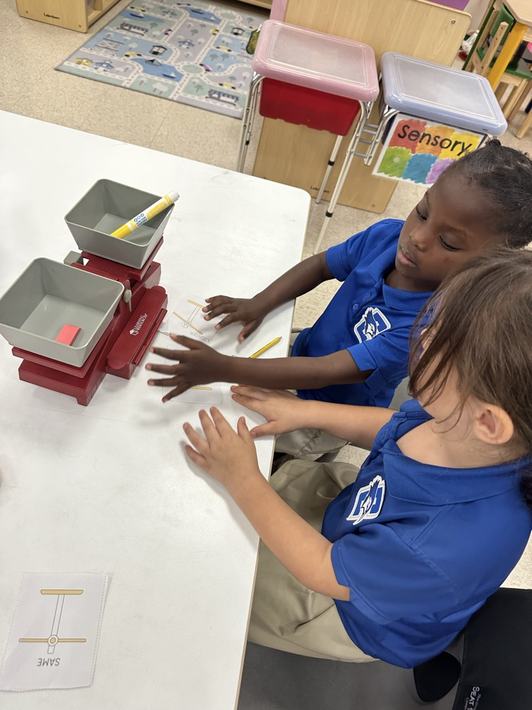 Mrs. David and Ms. Addie’s class enjoyed using balance scales to test which objects were heavier or lighter during Math class. 💙🤍