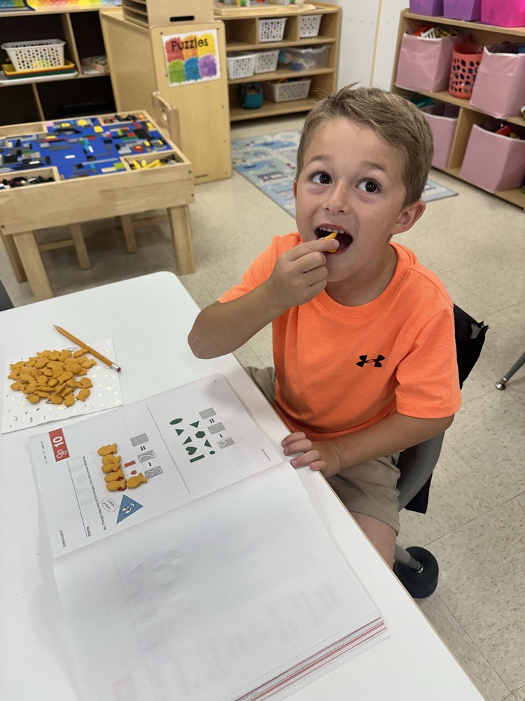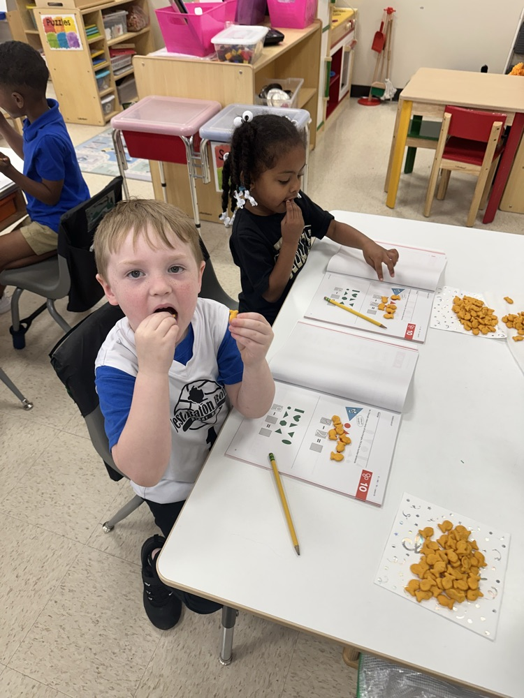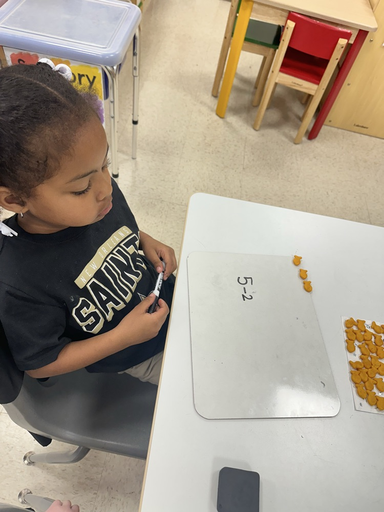 Today Mrs. David's mathematicians brought subtraction to life! We used goldfish to act out real-life subtraction stories. Students counted their fish, took some away, and then wrote the matching number sentence to show their thinking. Hands-on learning like this helps students see, touch, and understand what subtraction really means.