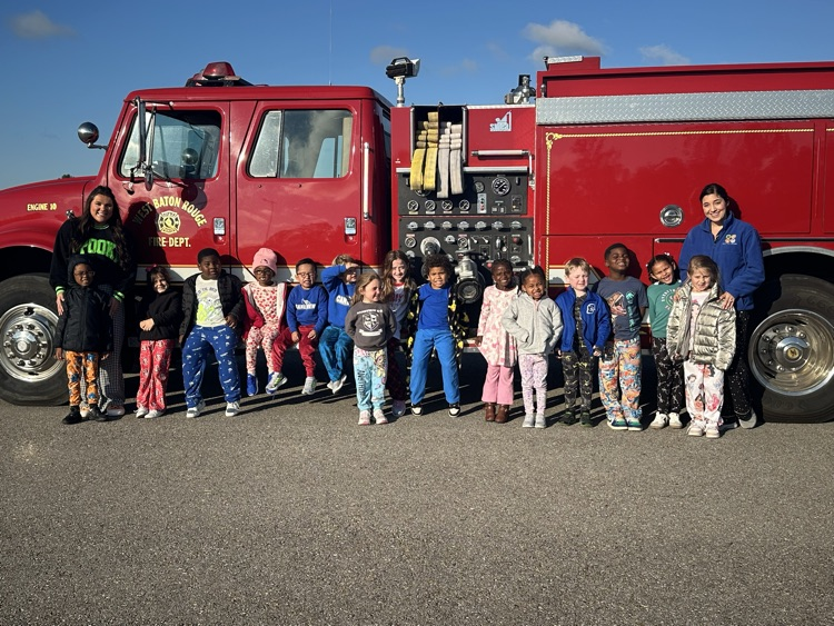 Celebrating fire safety week with a visit from Sparky the fire dog and the firefighters! 🚒