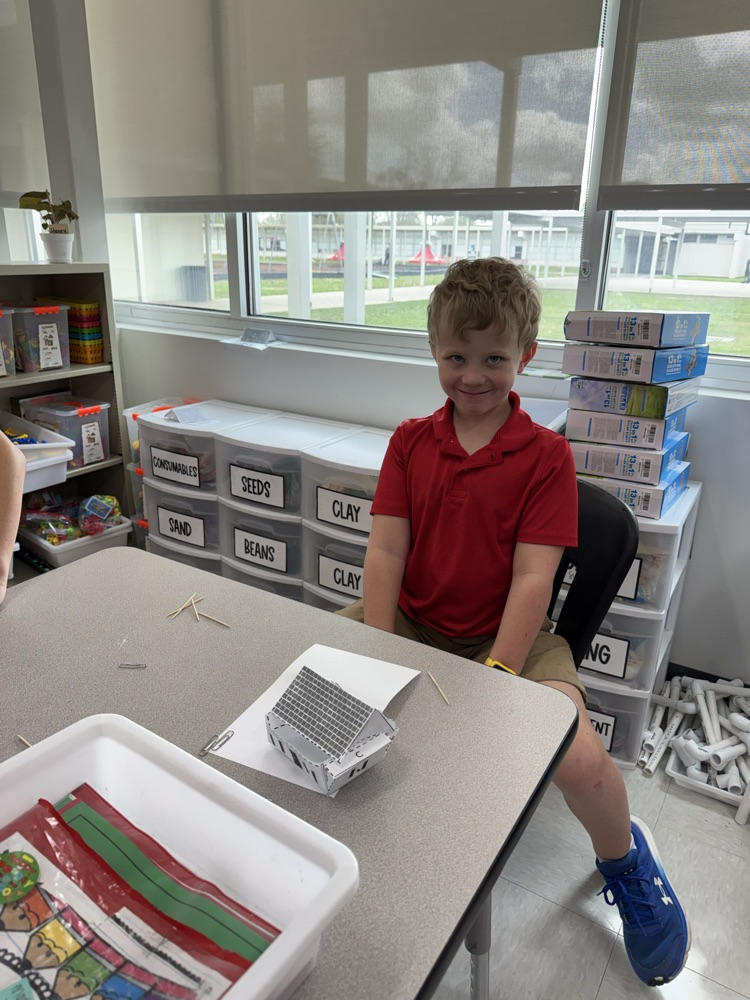 3rd graders using the design process to prevent a house from blowing away in the wind.