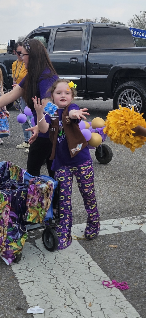 PAES Girl Scouts @ the Mardi Gras Parade 💛💜💛